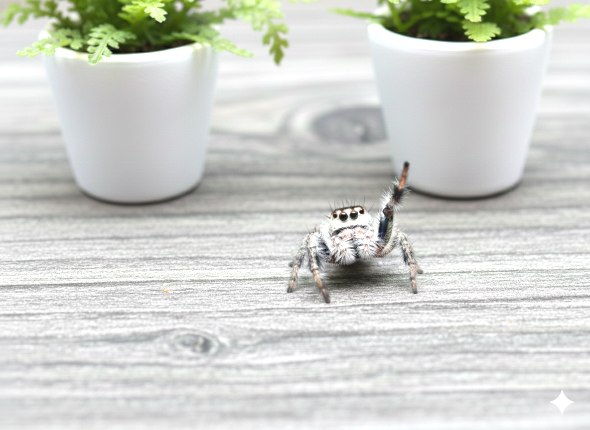 "I was a little nervous about becoming a spider parent, but the team at Jumping Spider Hood made it so easy. My Regal girl arrived healthy and curious, and the enclosure is absolutely beautiful; it’s like a piece of art in my living room. I’m officially a proud member of the hood!"